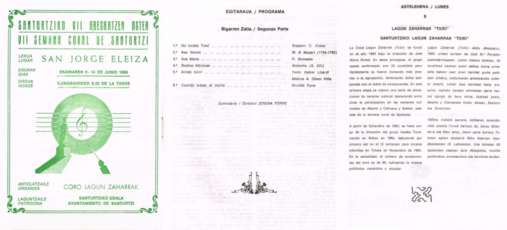 Concierto 1: VII Semana Coral de Santurtzi 09/06/198609/01/2023 por Joseba Torre, posted in Conciertos