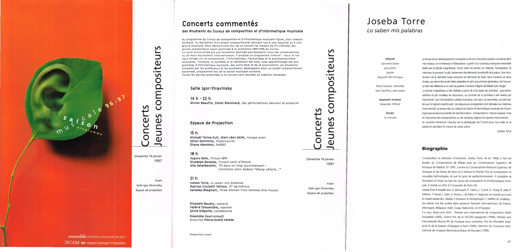 Concierto 33: Conservatoire de Paris, Cité de la Musique 31/01/199730/04/2025 por Joseba Torre, posted in Conciertos