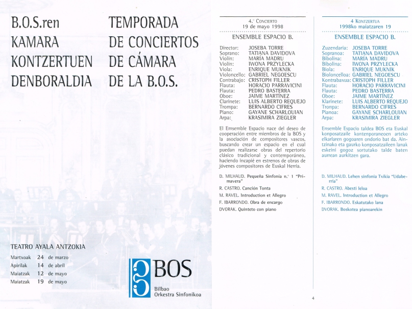 Concierto 47: Grupo Instrumental de Bilbao «Espacio B» 19/05/199830/04/2025 por Joseba Torre, posted in Conciertos