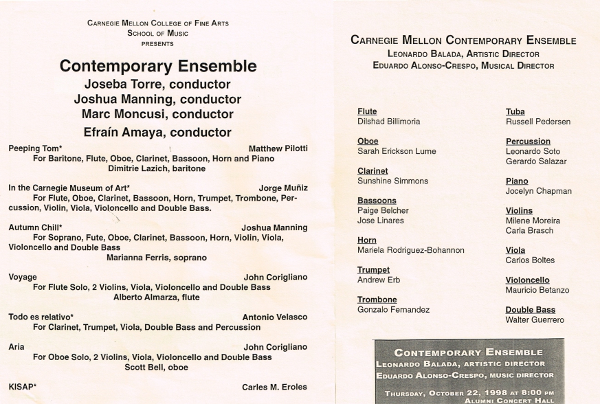 Concierto 52: Contemporary Ensemble, Pittsburgh 22/10/199827/05/2025 por Joseba Torre, posted in Conciertos