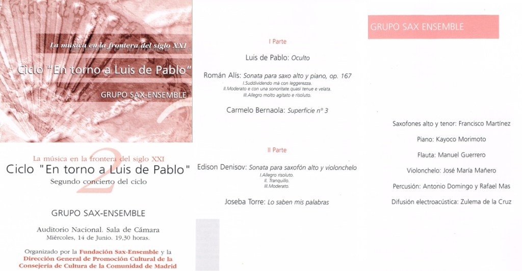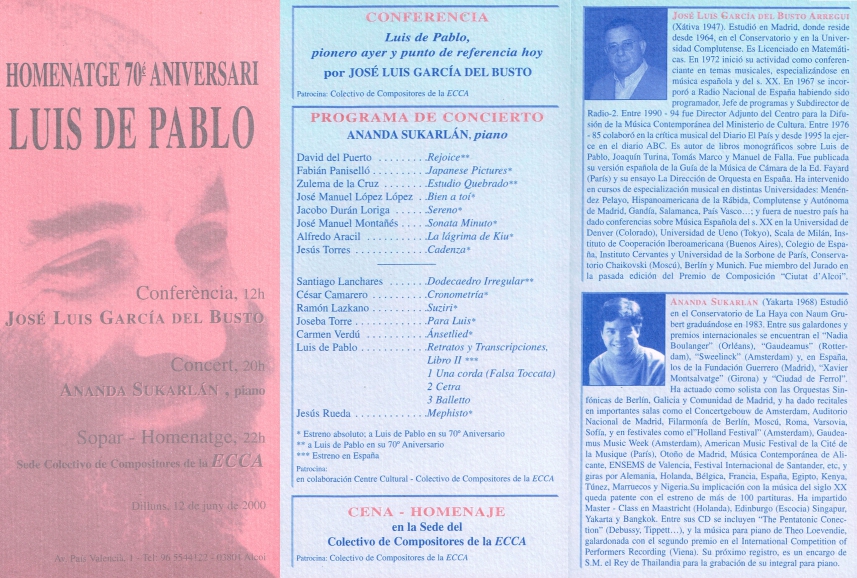 Concierto 88: Homenatge 70 Aniversari Luis De Pablo, Alcoi 12/06/200030/04/2025 por Joseba Torre, posted in Conciertos