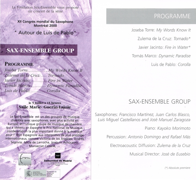 Concierto 90: XII Congrès Mondial du Saxophone, Montreal 05/07/200030/04/2025 por Joseba Torre, posted in Conciertos