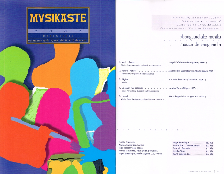 Concierto 191: Musikaste. XXX Semana Musical de Rentería 20/05/200209/01/2023 por Joseba Torre, posted in Conciertos