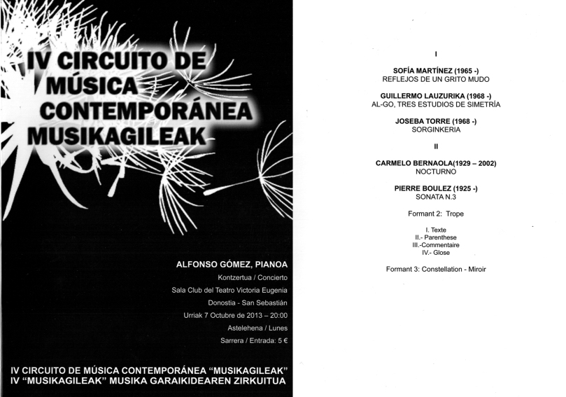 Concierto 216: IV Circuito de Música Contemporánea «Musikagileak» 07/10/201309/01/2023 por Joseba Torre, posted in Conciertos