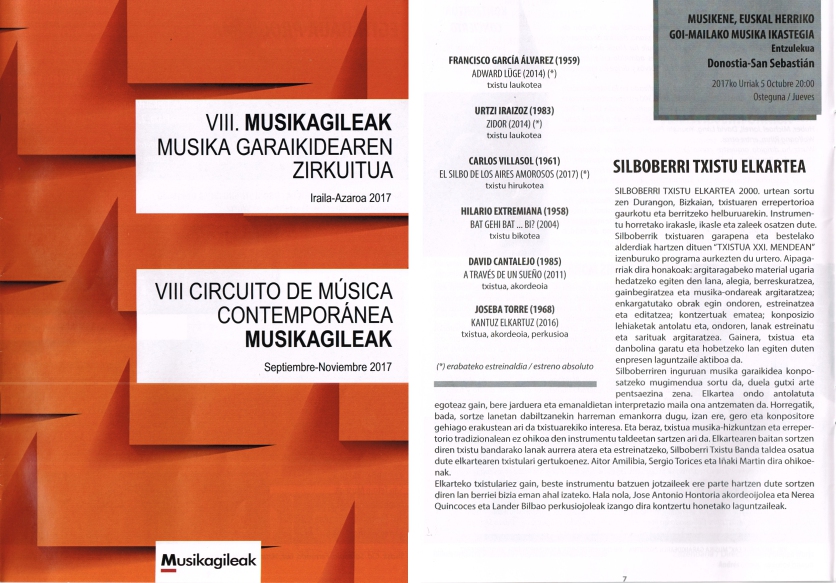 Concierto 246: VIII Circuito de Música Contemporánea Musikagileak 05/10/201709/01/2023 por Joseba Torre, posted in Conciertos