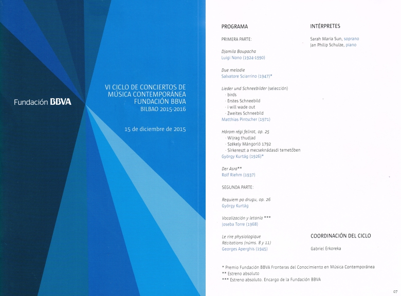 • Conciertos 261-262: Museo Guggenheim, Bilbao. Izaskun Arrue Kulturgunea, Vitoria.