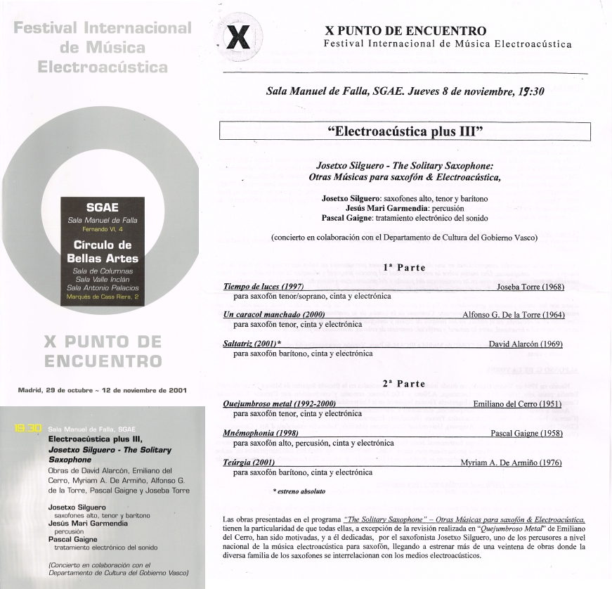 Concierto 107: Festival Internacional de Música Electroacústica, X Punto de Encuentro 08/11/200130/04/2025 por Joseba Torre, posted in Conciertos